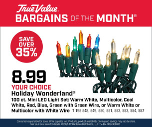 October Bargain Of The Month! Your Choice of Holiday Wonderland® 100 ct. Mini LED Light Set: Warm White, Multicolor, Cool White, Red, Blue, Green with Green Wire, or Warm White or Multicolor with White Wire for only $8.99