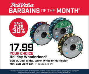 October Bargain Of The Month! Your Choice of Holiday Wonderland® 200 ct. Cool White, Warm White or Multicolor Mini LED Light Set for only $17.99.