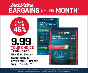 October Bargain Of The Month! Your Choice of TruGuard® 10 x 12 ft. Blue or Hunter Green/Brown Multi-Purpose Tarp for only $9.99.