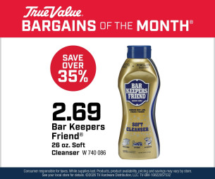 Bar Keepers Friend® 26 oz. Soft Cleanser $2.69 ( Print This ) March Bargain Of The Month! Bar Keepers Friend® 26 oz. Soft Cleanser for only $2.69. (W 740 086) Customer responsible for taxes and fees. Prices valid March 1-31, 2026 while supplies last. Offered By: Western Ohio True Value Hardware